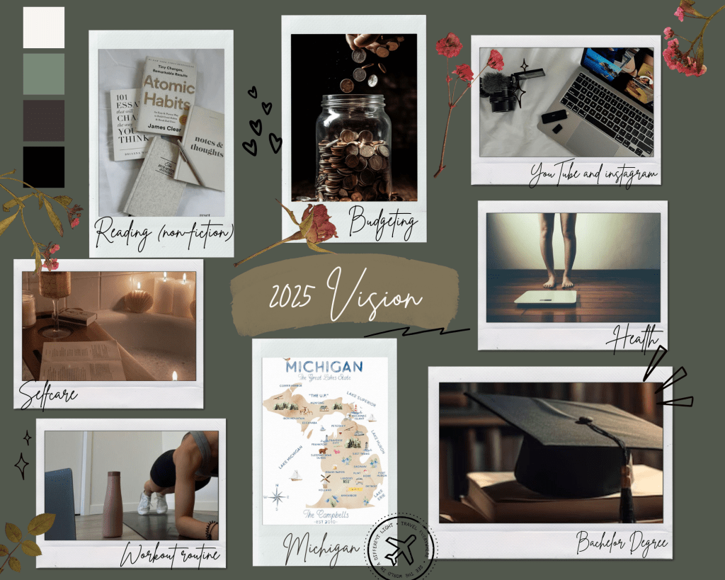 I feel like vision boards have become more and more popular. After watching YouTube videos about them for a while, I decided that I wanted to do my own for 2025 as they are a powerful tool and I feel like they will help me to focus on my aspirations. If you’re ready to manifest your desires and focus on your goals as well, creating a vision board might be the perfect place to start. I am sharing my general vision board that I made in January here, and I also have a more personal one, which goals I am not ready to publicly share yet.